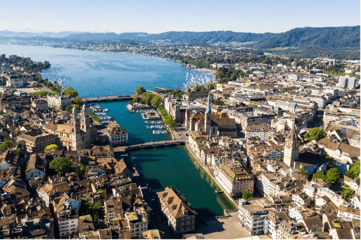 The next stop is Switzerland and the stylish Zurich, the largest city in the country. Here, you can visit the Gellert Hall, Zurich’s Old Town, with its narrow streets and traditional buildings. Take a walk along Lake Zurich and enjoy the view of the Swiss Alps. From there, head towards Lugano, a city with Italian influence, where the Mediterranean atmosphere blends with Swiss beauty.